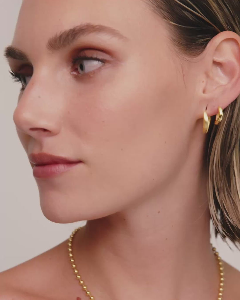 Wave Satin Hoops Large er et høykvalitets smykke, laget av ren 925 sterling sølv, forgylt med 14 karat gull.